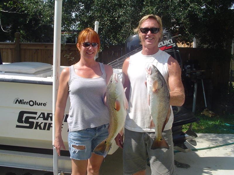 Blast from the past: Ginger and Bob caught some nice red drum while fishing in Cedar Creek.