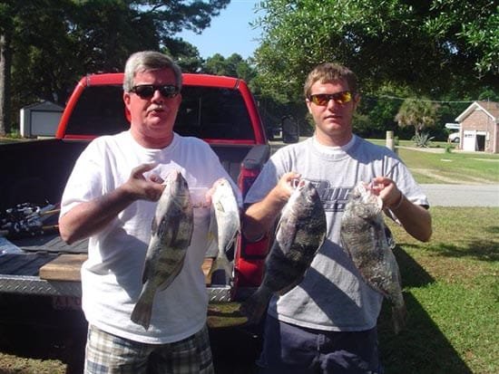 Tommy Smith & Josh Minor caught some black drum while fishing around Bald Head Island.