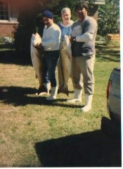 Blast from the past: Some nice red drum in the 40 to 45 pound range caught by Mark Jackson, Arthur Carty, & John Carty on the east beach of Bald Head Island.