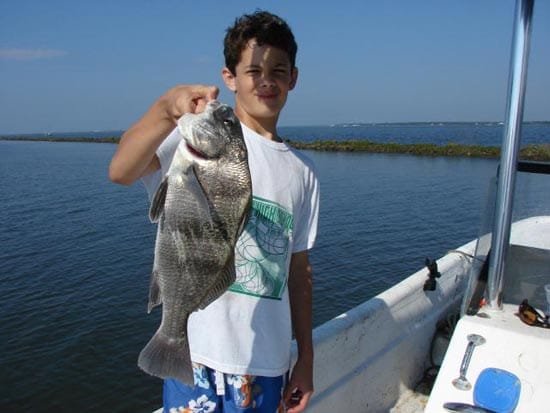 Phil Jr. caught several black drum while fishing with his father aboard Affordable Charters.