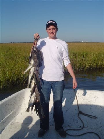 - Flounder, black drum, bluefish, croakers, monster AJ