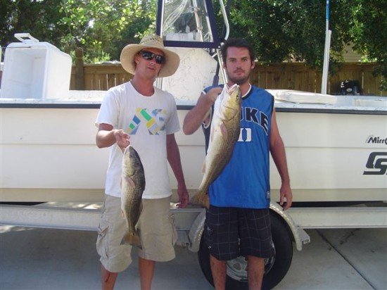 Hampton Pierce & Shawn Carty caught some red drum while fishing in the Cape Fear River.